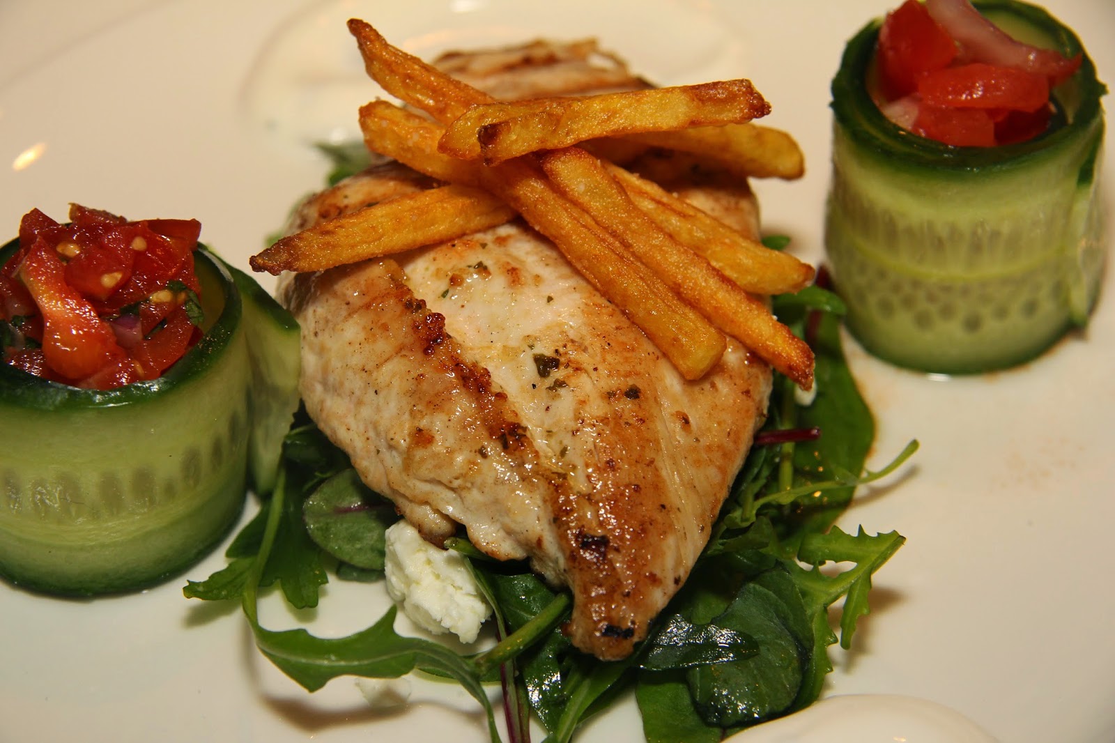- Klyfta tomat, skiva citron och gurka.