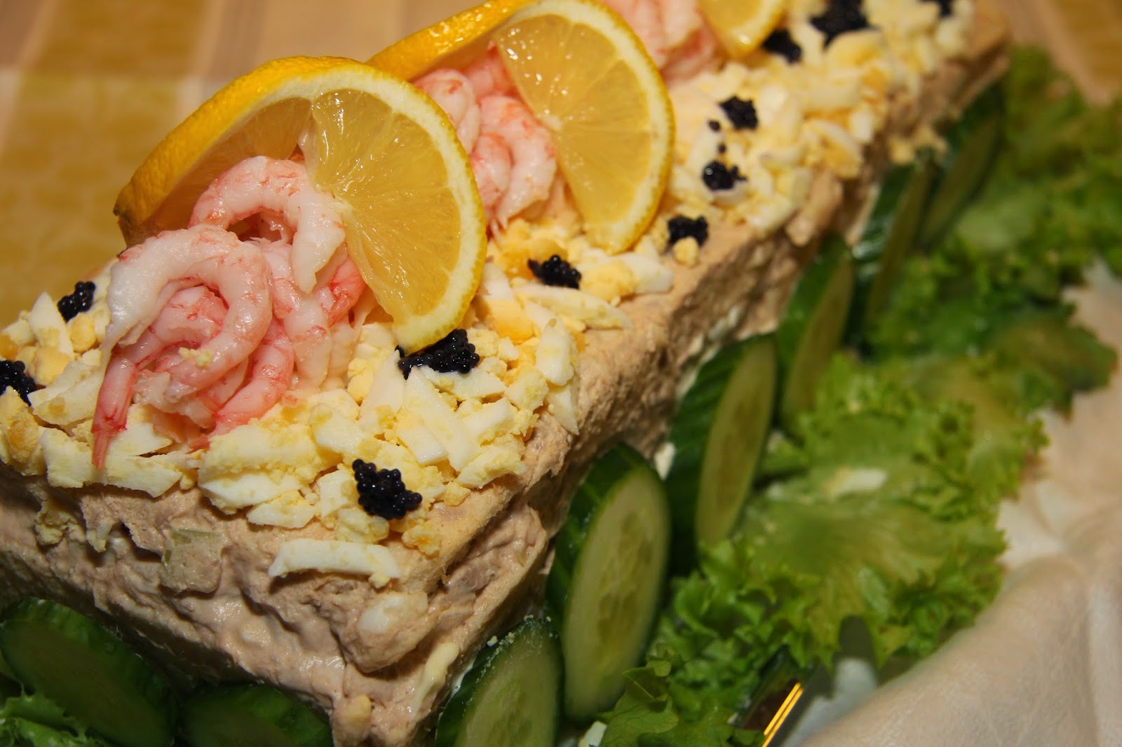 - Dekorera med räkor, tomat, citron och kaviar.
