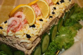 Servering: Servera smörgåstårtan kall.