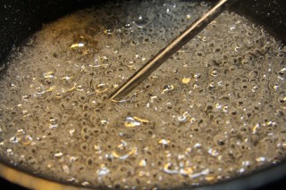 - Låt kolasåsen koka en stund tills den har en temperatur på 105-107 grader C. Kolasåsen kommer att se väldigt rinnig ut men den blir tjockare när den kallnat.