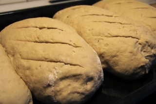 - Skär 3-5 jack (ca. 0,5 cm) djupa i de färdigjästa limporna.