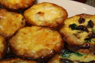 - Fördela osten i de förgräddade pajskalen och häll över äggstanningen – det gör inget om den går lite över kanten.