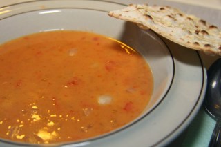 Min mormor bjuder ofta mig och min syster på den här soppan och den är lika ljuvlig varje gång. Om man inte vill ha den vegetarisk kan man skiva ner lite långkorv mot slutet och byta ut grönsaksbuljongen mot hönsbuljong.