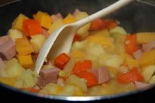 - Lägg ner de skurna rotfrukterna.