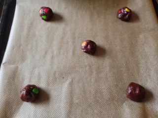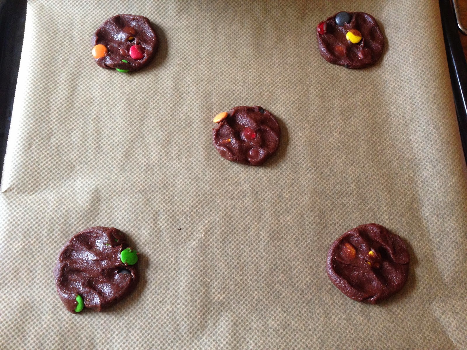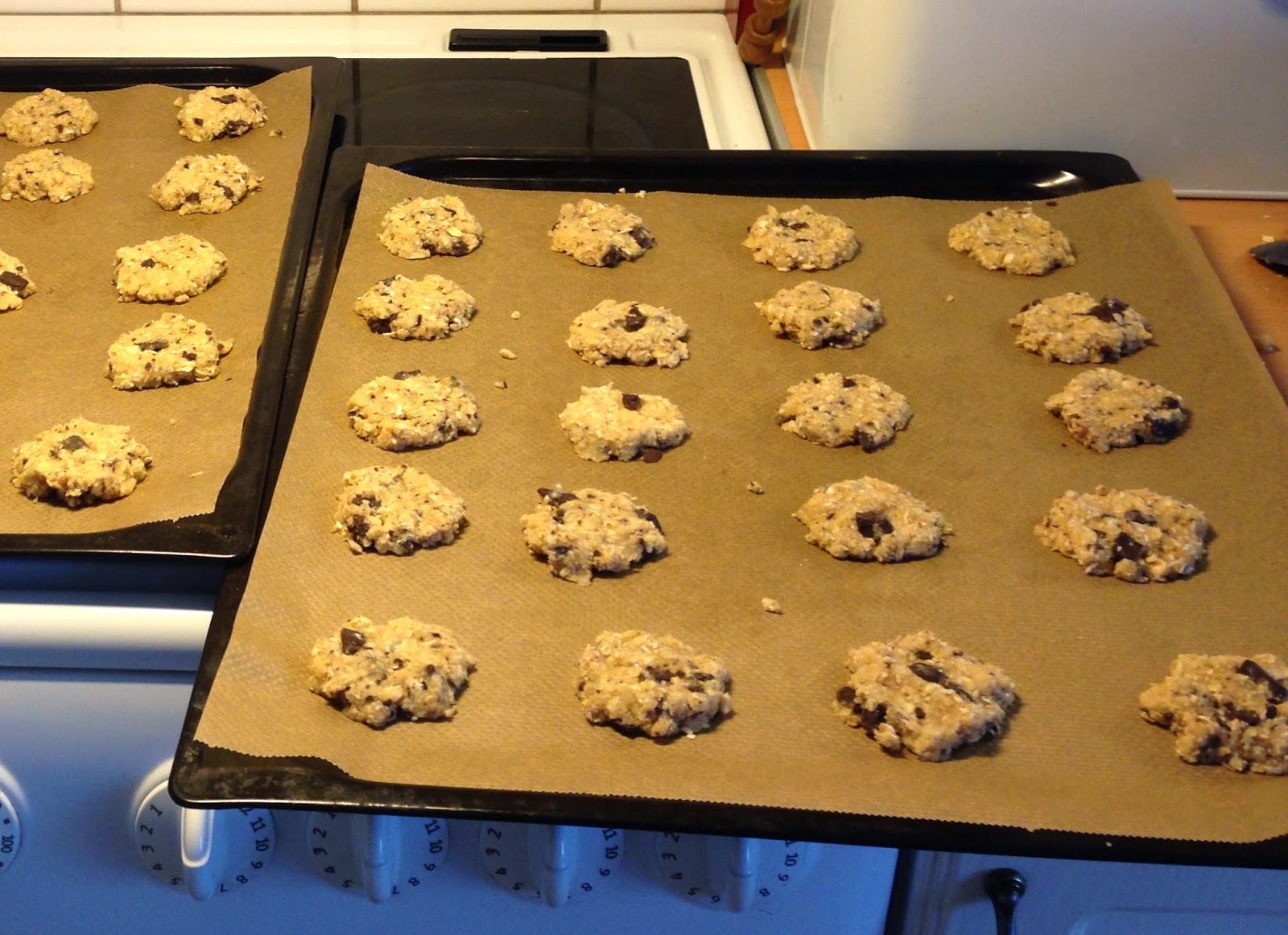 - Forma smeten till 12 st bollar och lägg ut på bakplåtsklädda plåtar. Kakorna flyter ut under gräddningen så lägg ut bollarna med stora mellanrum – jag gräddade 5-6 kakor på varje plåt.