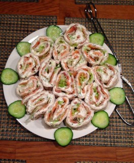 Laxrullar är tunnbrödsrullar med kallrökt lax, en röra med pepparrotssmak och sallad. Måtten är inget man måste följa exakt utan se dem som riktlinjer. Receptet är för för 4 rullar (ursprungligen 4 1/2) och det är beräknat 1 laxrulle per person. Man kan även göra rätten som förrätt eller till buffé och det räcker då till fler personer.