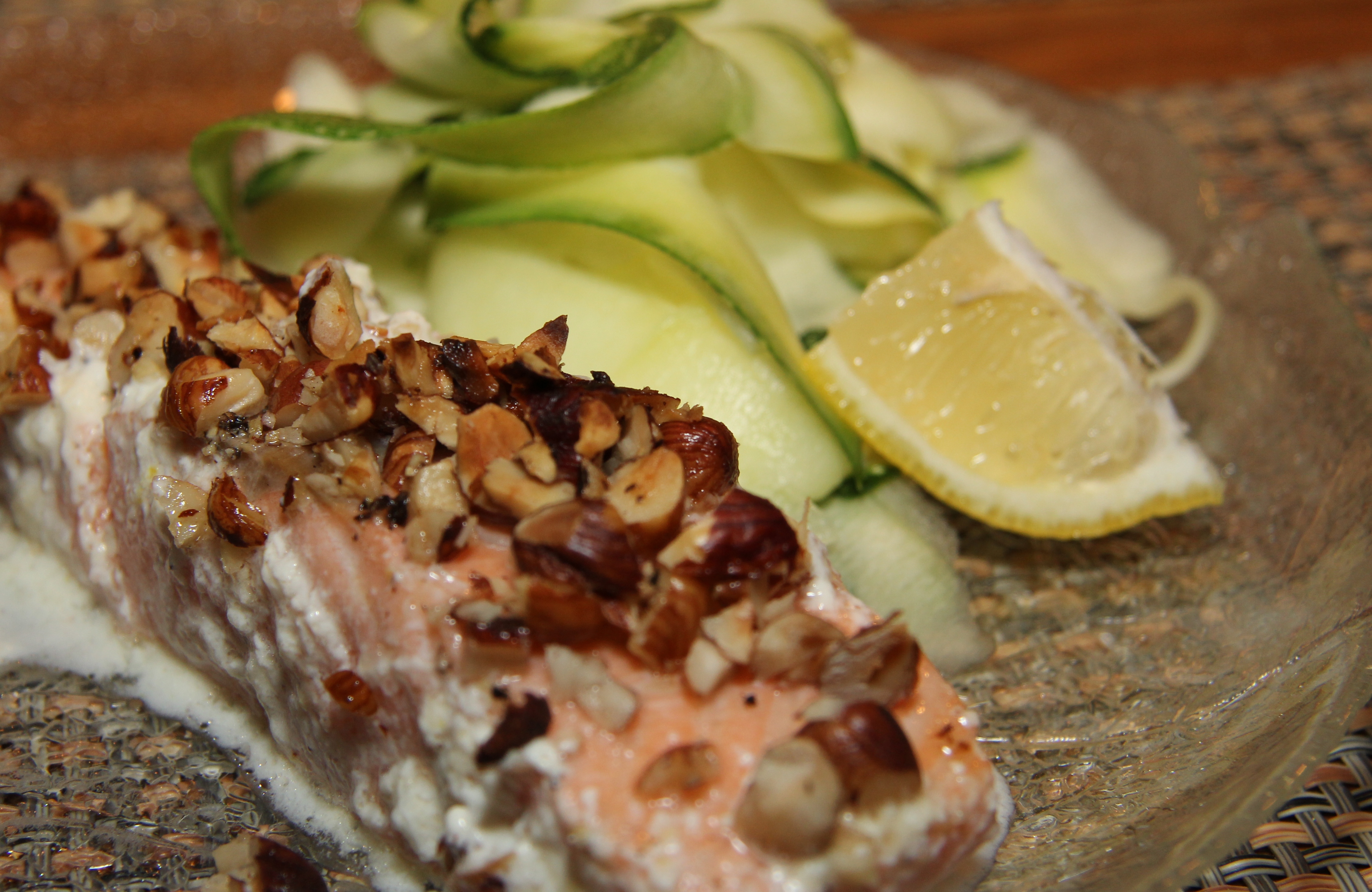 Lax med hasselnötstäcke och zuchinipasta 006