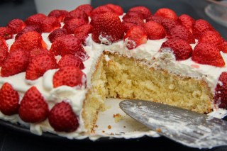 - Ta försiktigt bort plasten runt tårtan (i skarven får du skära bort den bit som överlappar).