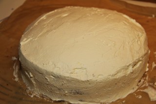 - Ta ut tårtan ur kylen och dra försiktigt bort plasten runt tårtan.