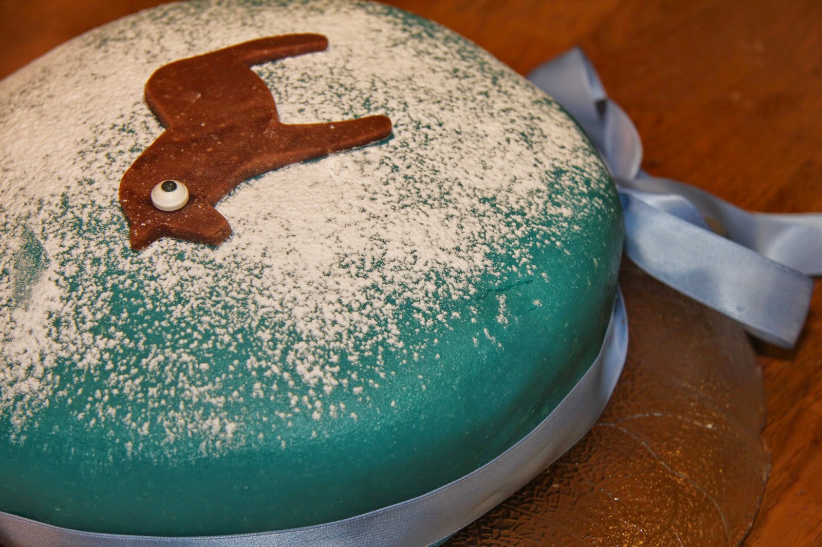 - Ta ut tårtan ur kylen och dra försiktigt bort plasten runt tårtan.